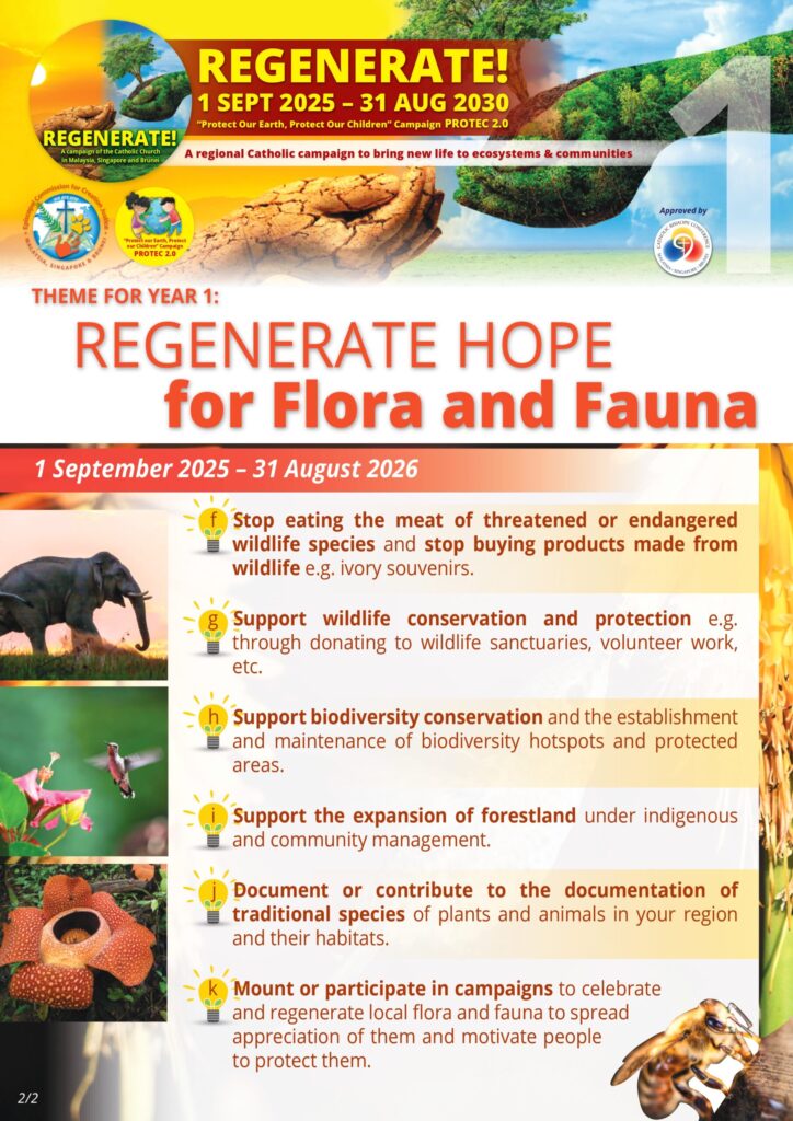 From 1 September 2025 until 31 August 2026, the Catholic Church in Malaysia, Singapore, and Brunei begins the first year of the 5-year campaign “Regenerate Hope”, also known as PROTEC 2.0 – “Protect Our Earth, Protect Our Children”.